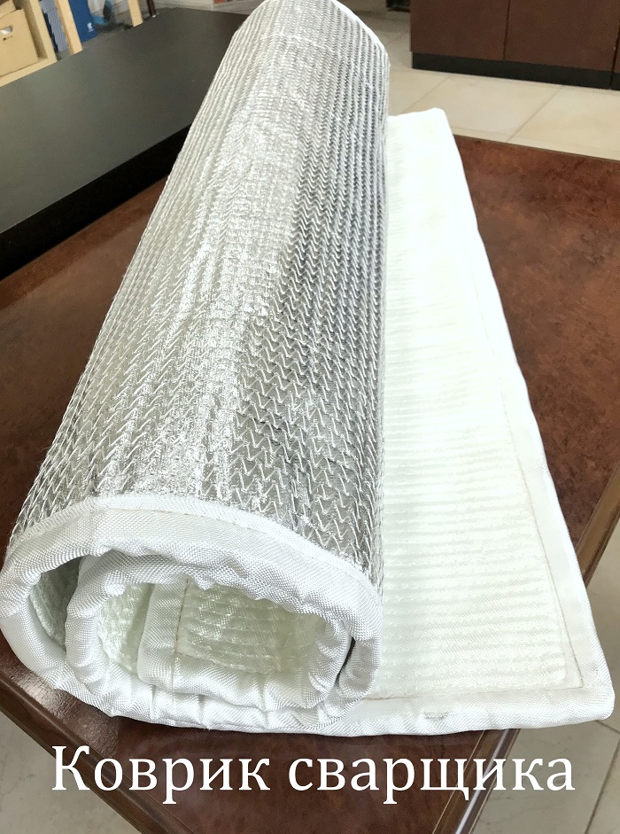 Теплоизоляционные маты для проведения сварочных работ обшиты сверху кремнеземной огнестойкой тканью, снизу обшиты фольгированной тканью, внутри находится негорючий теплоизоляционный наполнитель.